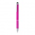 Sleek aluminum pen featuring a twist mechanism and tactile pointer. Blue ink.