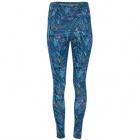 Ladies' ankle-length printed leggings with an adjustable high waist. Features a back pocket in the waistband with a reflective band.