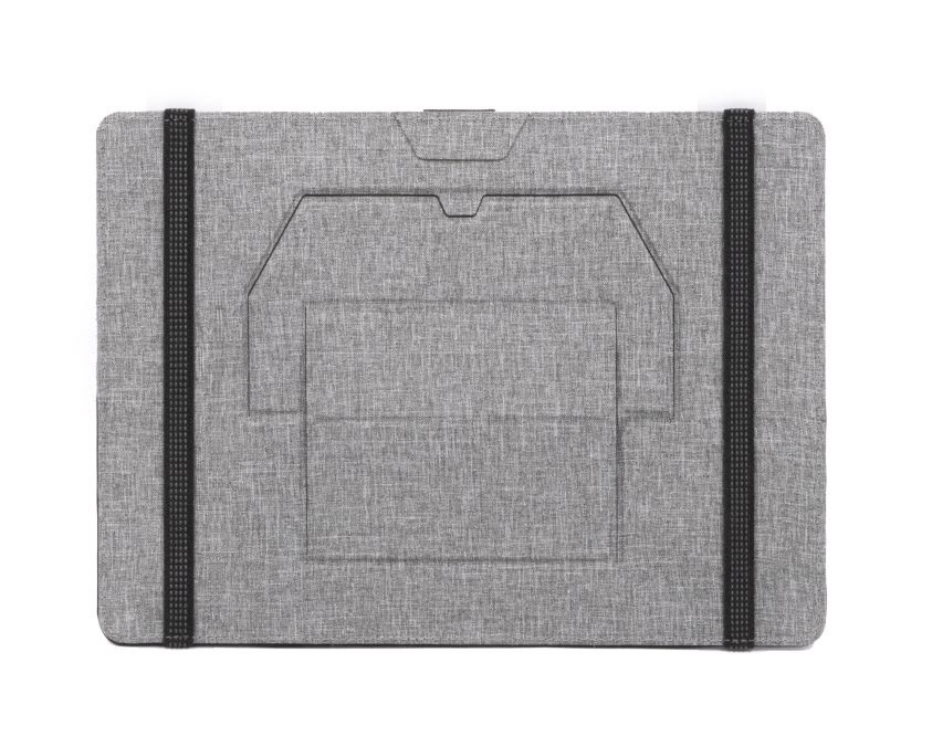 Clipboard RPET is the laptop utility belt designed for modern nomads. Securing to your laptop like an elastic bookmark, this practical accessory stores essentials — phone, notebook, pen, pencil, mouse and more — in multiple pockets while keeping them close at hand. Clipboard also includes an integrated foldable laptop stand to create an ergonomic workspace anywhere.
