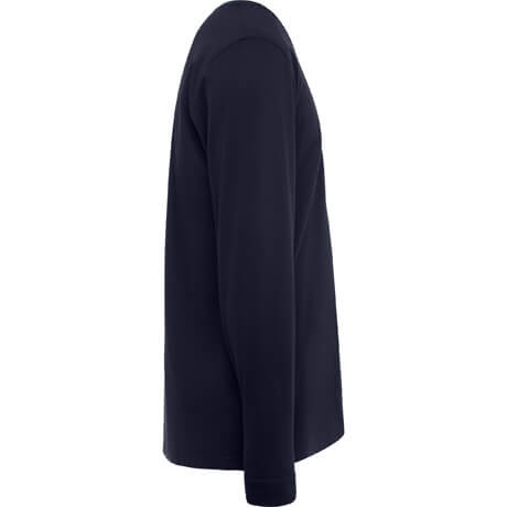 Long sleeve T-shirt crafted from flame-retardant fabric. Round neckline with 1x1 ribbed knit hem and ribbed sleeve ends. Constructed with side seams.