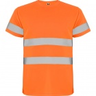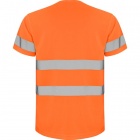 High visibility short sleeve technical t-shirt. Crew neck in the same fabric and reinforced covered seams in collar. Two horizontal reflective bands in body and one in sleeves.