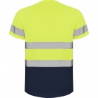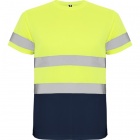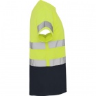 High visibility short sleeve technical t-shirt. Crew neck in the same fabric and reinforced covered seams in collar. Two horizontal reflective bands in body and one in sleeves.