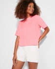 Cropped short-sleeve t-shirt designed for women. Features a crew neck with 1x1 ribbing and a wide 1x1 trim. Reinforced covered seams enhance durability and structure. If you follow current trends, DOMINICA offers a fashionable choice with its contemporary design.