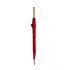 Umbrella crafted from 190T polyester, featuring a wooden handle and automatic opening. Ribs and tips in black. Velcro fastening.