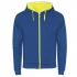 Sweat jacket with details in fluor colour. Central zip with puller to contrast. Hood with lining in microperforated polyester fabric in contrasting fluor colour and drawstring and contrasting metal eyelets in fluor colour. Long sleeves with cuff and waist rib 1x1. Two front pockets with wide trim. Reinforced covered seams in neck.