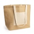 Laminated jute bag featuring a front pocket and long natural cotton handles.