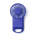 Portable handheld fan featuring a carabiner and backrest option, offering three speeds. Made from recycled ABS plastic, includes USB Type-C cable and is packaged in an environmentally friendly box.