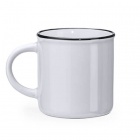 Ceramic mug in vintage-style design with a round handle.