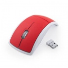 Wireless folding mouse featuring a precision optical sensor and an ergonomic design with a rubber touch surface for comfortable use. Compact and portable, it folds for easy storage and travel. 2 AAA batteries not included. Presented in white box.