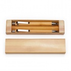 Bamboo pen and pencil set with push mechanism and blue ink. Supplied in a cardboard-effect wood box.