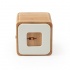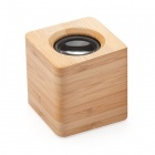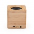 Compact wireless speaker with wooden casing and visible membrane, designed for clear, natural sound. Bluetooth 3.0. Power 3 W. Rechargeable battery. Charging cable included. Product individually packaged in a designer box.