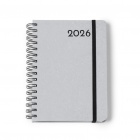 A5-size ring calendar. Cover in recycled leather with engraving and an elastic strap. 348 pages plus 4 additional map pages. Paper weight: 60 gsm. Interior with white pages.