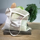 Eco-friendly shopping bag crafted from 100% cotton, 178 g/m². Natural colour with long 60 cm handles. Design features half soft solid fabric and half mesh for breathability and style.
