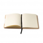 A5 notebook. This A5 notebook features bamboo hard covers with a phone stand function, a sewn-in bookmark and 80 lined pages for organized note-taking.