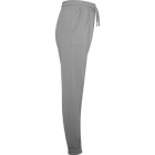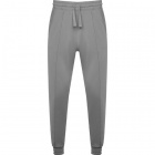 Full-length trousers featuring ribbing at the hem of the main fabric. Elastic waistband with adjustable drawstring. Two side pockets.