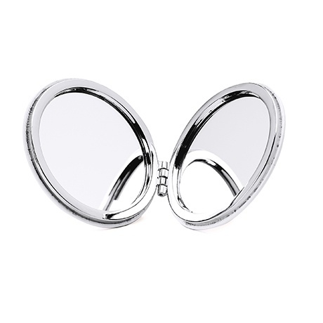 Compact foldable double-sided pocket mirror featuring 1x and 2x magnification — ideal for on-the-go touch-ups and travel grooming.