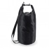 Durable ripstop waterproof bag with a click-seal, watertight closure. Comes with a carabiner and an adjustable shoulder strap for carrying.