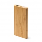 Power bank with wireless charging function and an eco-friendly design. The main structure is crafted from natural bamboo for a stylish, sustainable look.