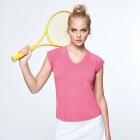 All-sports technical t-shirt for woman, short sleeve ranglan style. V-neck. Polyester fabric, cotton feel. Fitted cut.
