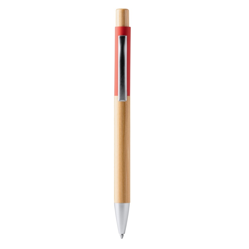 Ball pen with a bamboo barrel and push-button mechanism. Soft-touch colour details, metal tip and clip. Blue ink.