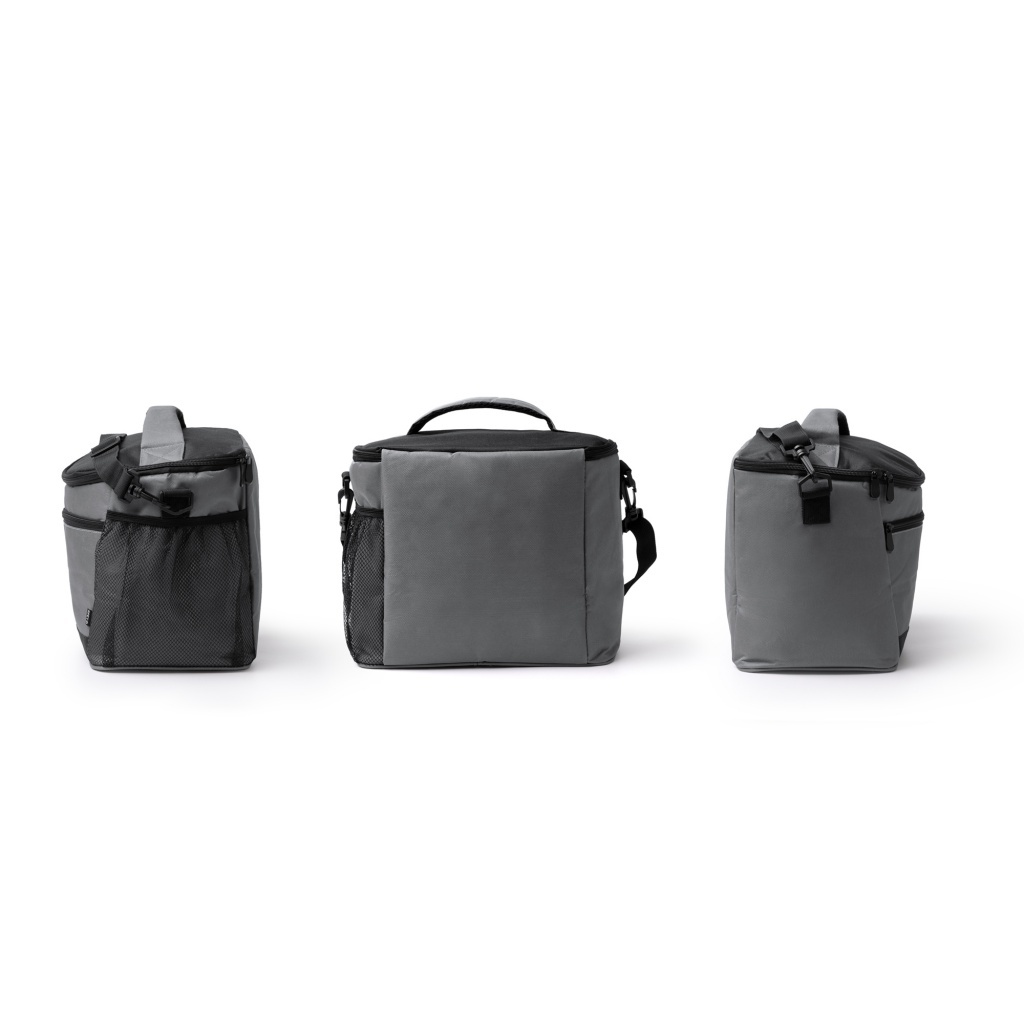 Spacious thermal bag crafted from 600D RPET fabric. Features main and side zippered pockets, an isothermal interior and an adjustable carrying strap. Capacity: 8 l.