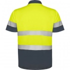 Technical high-visibility short-sleeve polo featuring a 3-button placket and a 1x1 ribbed collar. Designed with two horizontal high-visibility bands across the chest and sleeves, and constructed from anti-snagging fabric for durable wear.