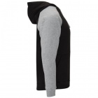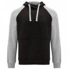 Two-tone unisex hoodie featuring a crossed-neck hood with metal eyelets and contrasting inner lining and cords. Raglan sleeves provide a contrasting look. Includes a kangaroo pocket and 1x1 rib-knit cuffs and hem with elastane for a comfortable, secure fit.