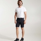 Shorts with rolled-up legs. Side and back pockets finished with piping. Durable material. Comfortable recreational or work shorts.