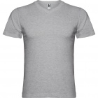 Short sleeve V-neck t-shirt, 4 layer neck. Reinforced covered seams in collar and shoulders, side seams.