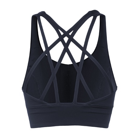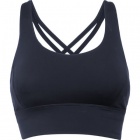 Technical women's top in breathable fabric. Features decorative crossed straps at back and a high-rise fit.