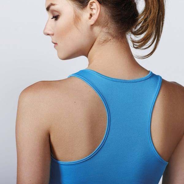 Technical t-shirt featuring armholes and a trimmed neckline, with a swimming-style back and side seams for a sporty fit.