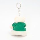Soft polyester teddy bear keyring wearing a coloured t-shirt.