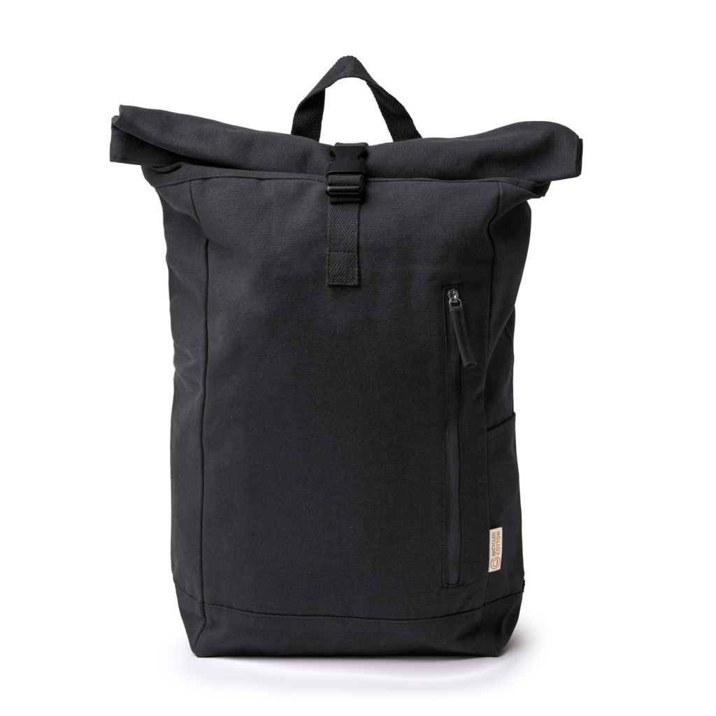 Eco-friendly backpack crafted from recycled cotton, 370 gsm, offering durable everyday carry with a roomy main compartment featuring a zippered pull-out opening and adjustable fit. Includes a zippered front pocket and a convenient side pocket.
