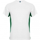 Short-sleeve technical T-shirt with two colour panels. 1.- Crew neck with reinforced seams. 2.- Contrasted side panels.