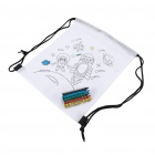 Children's backpack with drawstrings made of non-woven material. Features a design for coloring and includes 5 waxes in varied colors.