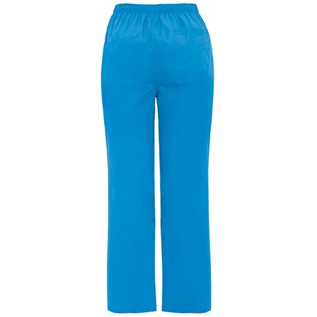 Long unisex trousers. Straight leg cut. Waist with elastic fastened with a button and zipper. Back pocket.