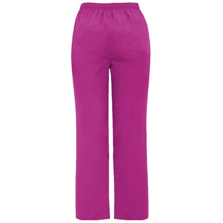 Long unisex trousers. Straight leg cut. Waist with elastic fastened with a button and zipper. Back pocket.