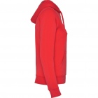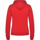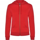 Woman´s hooded jacked with hood lined to tone. Front metal zip and kangaroo pocket. Reinforced covered seams in collar. 2x2 rib knit in cuffs and waist. Fitted cut.