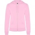 Woman´s hooded jacked with hood lined to tone. Front metal zip and kangaroo pocket. Reinforced covered seams in collar. 2x2 rib knit in cuffs and waist. Fitted cut.