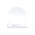 Round-shaped glass trophy with a rectangular base. Black case included.