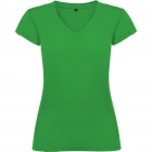 V-neck woman short sleeve t-shirt, ribbed 1x1. Slim fit with side seams.