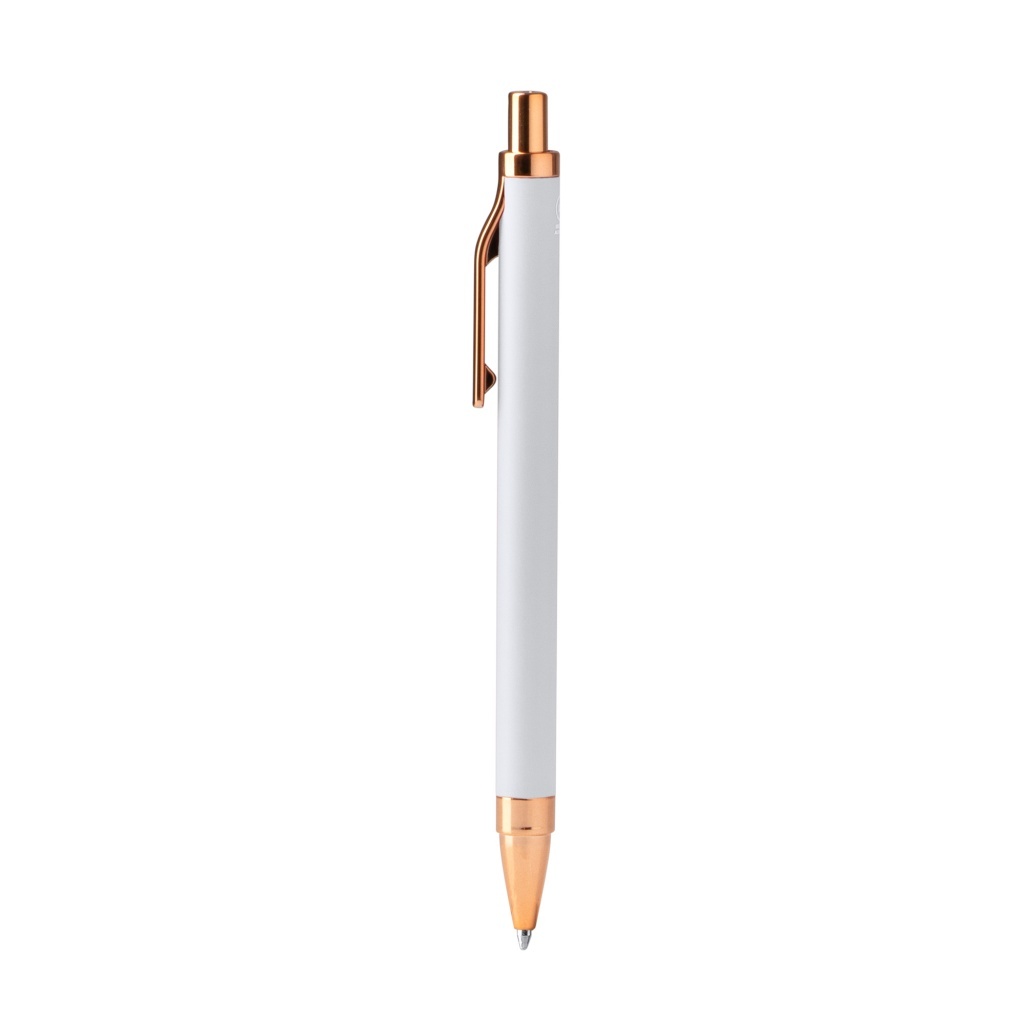 Pen crafted from recycled aluminum with a matte finish and copper accents. Fitted with a large blue ink refill for smooth writing and extended use.