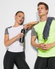 Front fabric: 100% bird's eye polyester. Back fabric: 100% space dye polyester , 135 g/m².