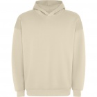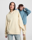 Unisex oversized sweatshirt featuring a hood lined with the same fabric, soft tape covering the neck stitching, two side pockets and 2x1 ribbing on the cuffs and hem — a comfortable, versatile wardrobe staple.