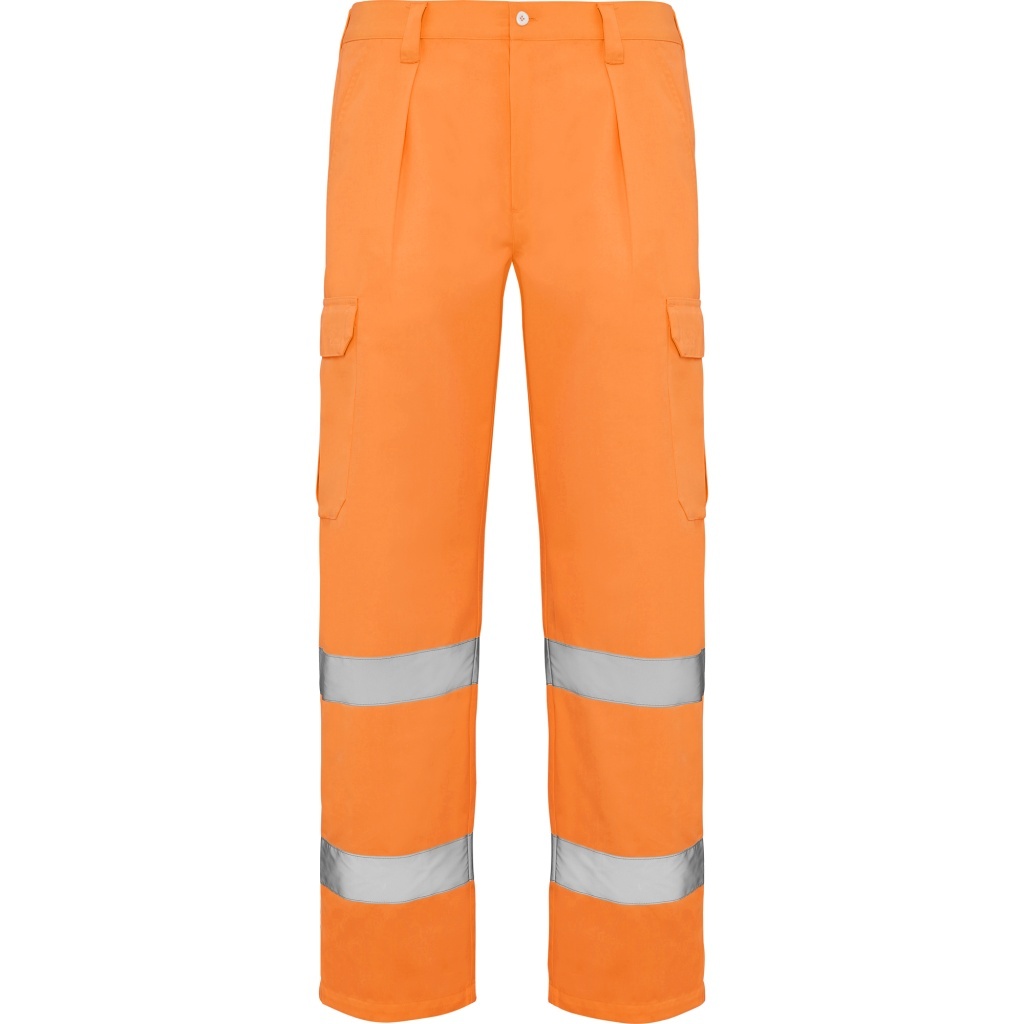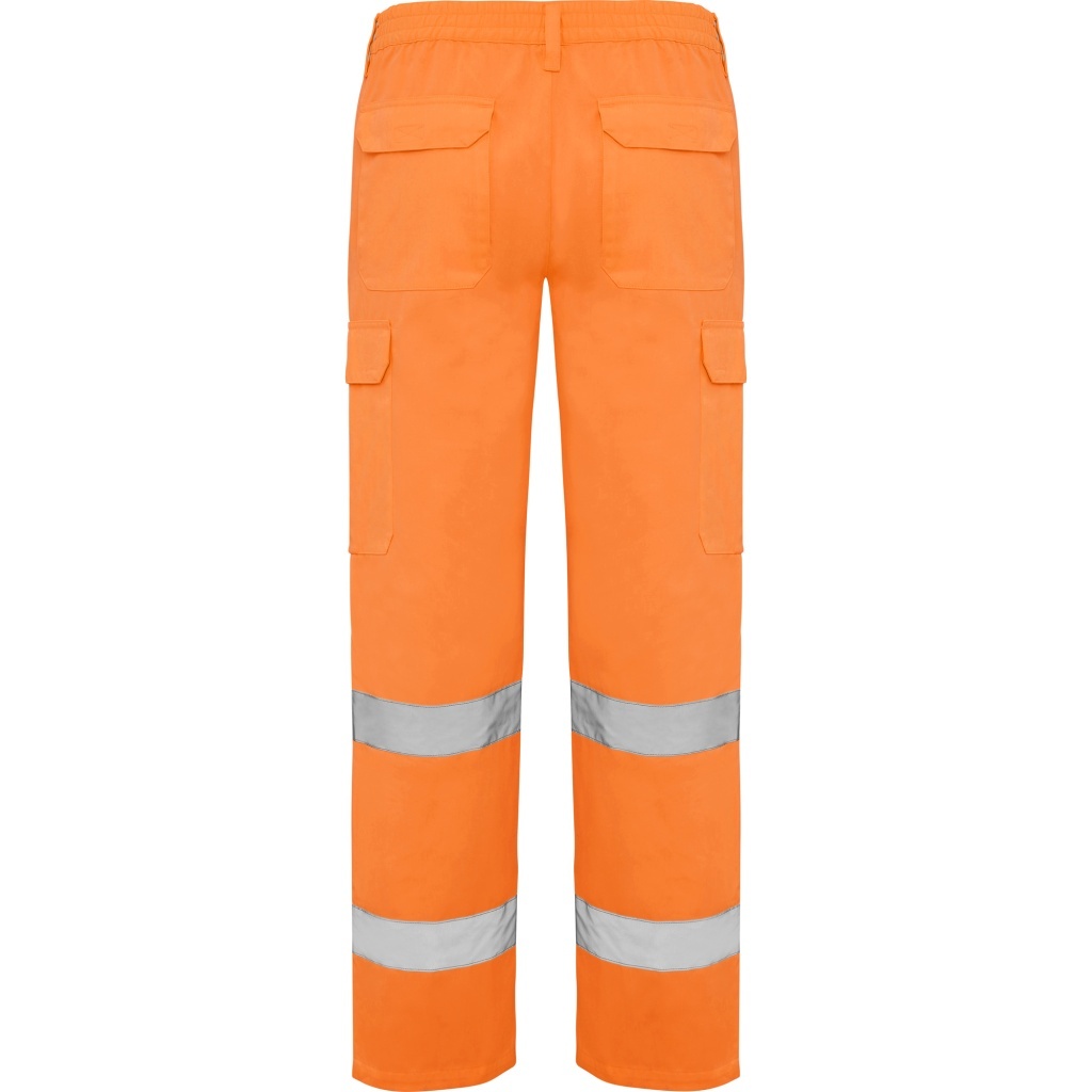ALFA by Roly offers durable, high-visibility protection for demanding work environments. These trousers include an elasticated back waistband for comfort, multiple outer pockets with and without velcro closures for secure storage, and two horizontal reflective bands to enhance visibility.