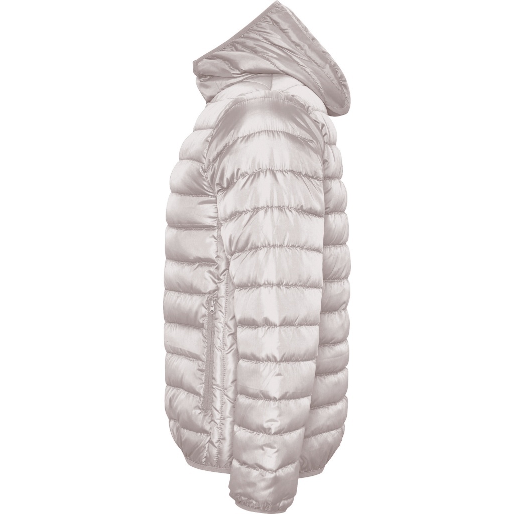 Men´s quilted jacket feathery to the touch with fitted hood.