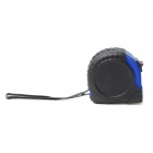 Retractable measuring tape with a 7.5 m length, featuring a locking mechanism and a metal tip. Supplied with a colorful rubber-coated case, a metal belt clip and a carrying strap.