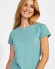 Przylegająca koszulka z krótkim rękawem dla kobiet. Uszyta z certyfikowanej przez OCS bawełny organicznej. Wyposażona w prążkowany dekolt 1x1 oraz wzmocnione kryte szwy przy kołnierzu.