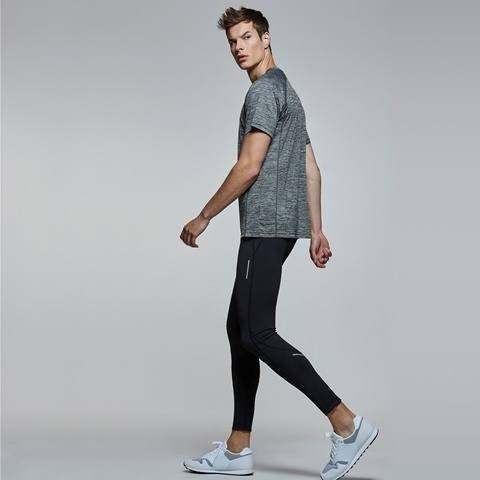 Męskie, techniczne spodnie do biegania z elastycznym ściągaczem w pasie oraz wewnętrznym sznurkiem krzyżowym dla precyzyjnej regulacji. Posiadają zewnętrzną tylną kieszeń zapinaną na zamek. Wykonane z elastycznej tkaniny, dopasowującej się do kształtu ciała.