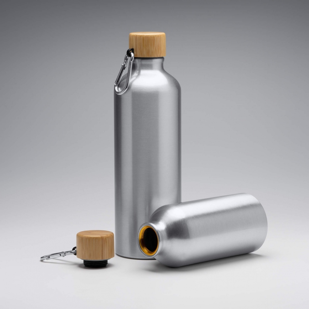 • BROLY - Aluminiowa butelka z karabińczykiem i bambusową pokrywką, 800 ml.